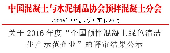 2016年度“全國(guó)預(yù)拌混凝土綠色清潔生產(chǎn)示范企業(yè)”評(píng)審結(jié)果公示