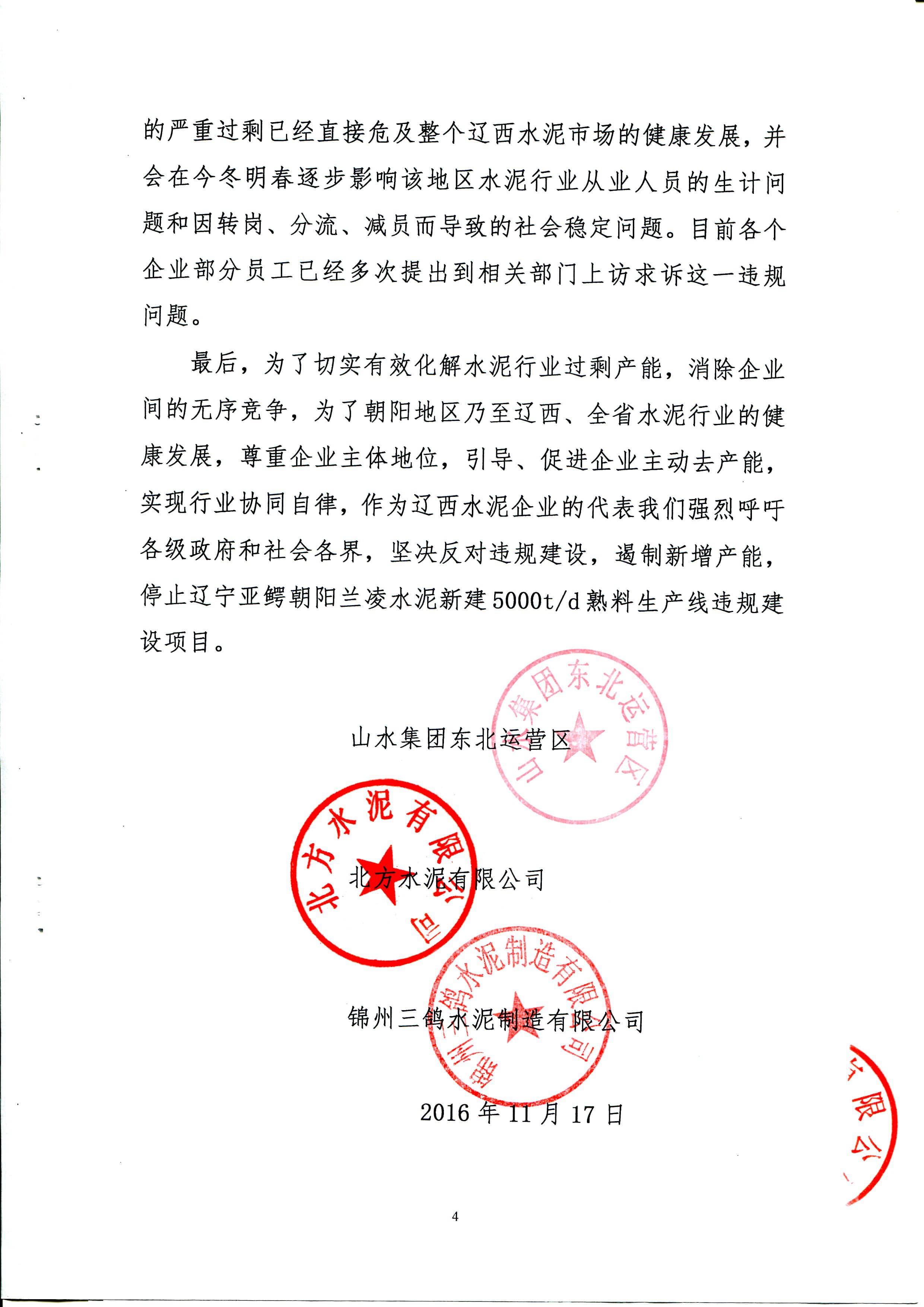 山水水泥、北方水泥、三鴿水泥、遼寧建材協(xié)會(huì)聯(lián)名舉報(bào)蘭凌水泥違規(guī)建線