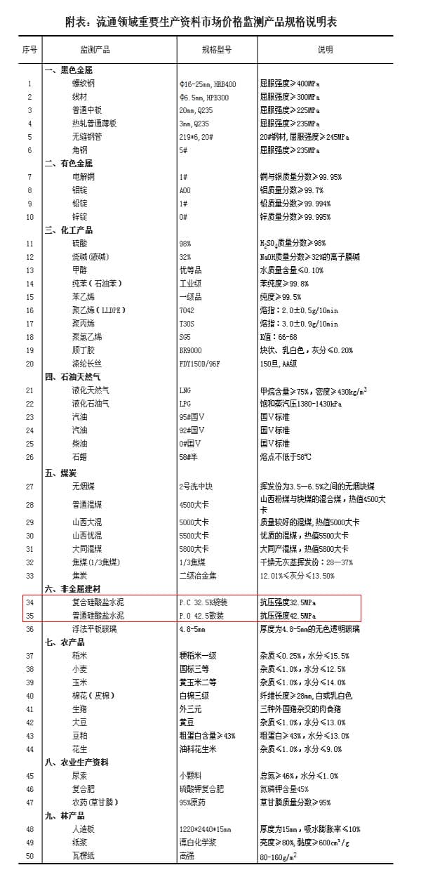 流通領(lǐng)域重要生產(chǎn)資料市場價格監(jiān)測內(nèi)容包括9大類50種產(chǎn)品的價格。類別與產(chǎn)品規(guī)格說明詳見附表。
