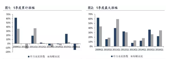 水泥股歷年1季度數(shù)據(jù)表現(xiàn)