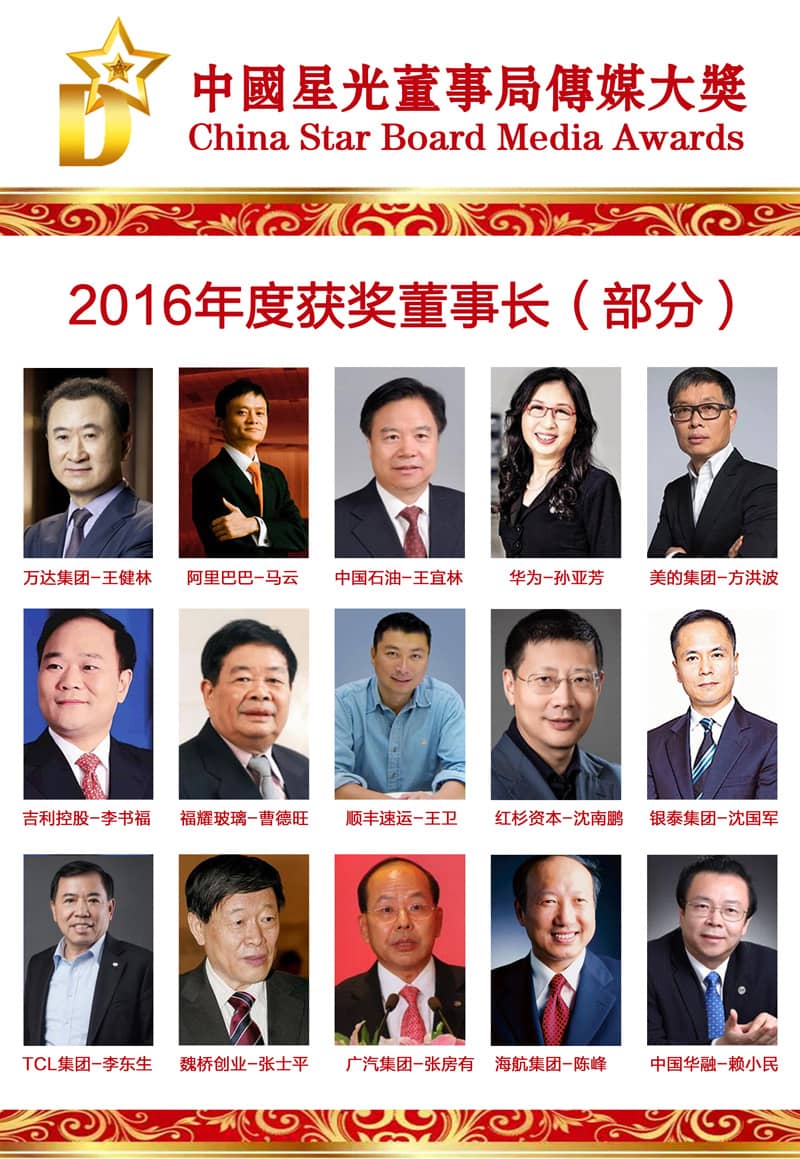 一、2016年度最具傳媒影響力董事局大獎(3名)