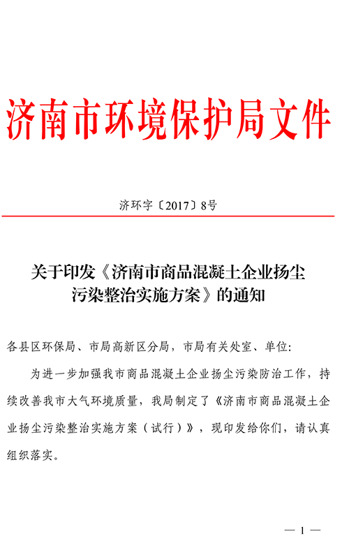 濟(jì)南市環(huán)境保護(hù)局關(guān)于印發(fā)《濟(jì)南市商品混凝土企業(yè)揚(yáng)塵污染整治實(shí)施方案》的通知