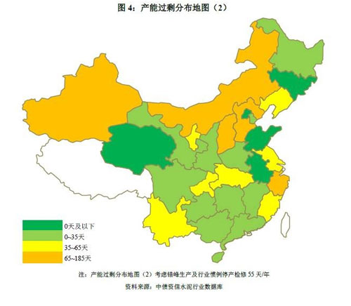 根據(jù)產(chǎn)能過剩分布地圖(2),考慮錯(cuò)峰生產(chǎn)及行業(yè)慣例55天/年停產(chǎn)檢修期后,各區(qū)域產(chǎn)能過剩矛盾有所緩解,然而盡管錯(cuò)峰停窯時(shí)間較長(zhǎng),但晉蒙和新疆地區(qū)產(chǎn)能過剩矛盾依然突出,未來簡(jiǎn)單依靠錯(cuò)峰改善供需格局的空間較為有限,短期內(nèi)恐難走出低迷。