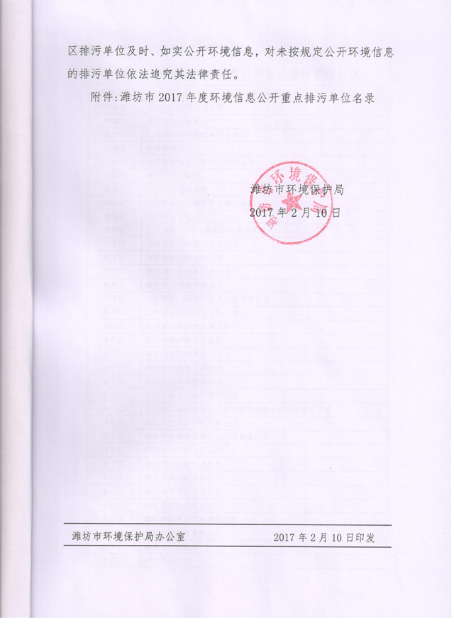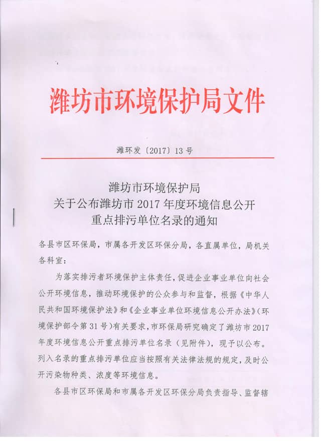 近日,濰坊市環(huán)保局對(duì)外正式公布《2017 年濰坊市環(huán)境信息公開重點(diǎn)排污單位名單》。據(jù)悉,該名單的公布是濰坊市環(huán)保局為積極落實(shí)排污者環(huán)境保護(hù)主體責(zé)任,促進(jìn)企業(yè)事業(yè)單位向社會(huì)公開環(huán)境信息,推動(dòng)環(huán)境保護(hù)的公眾參與和監(jiān)督,依據(jù)《中華人民共和國環(huán)境保護(hù)法》和《企業(yè)事業(yè)單位環(huán)境信息公開辦法》的有關(guān)要求面向全社會(huì)公布的。濰坊各縣市區(qū)共計(jì)189家企業(yè)事業(yè)單位被列入名單。