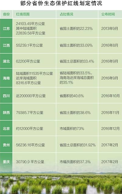 多數(shù)省份生態(tài)紅線保護(hù)區(qū)域面積占其轄區(qū)面積的三成以上,并配以嚴(yán)格的懲罰問責(zé)機(jī)制