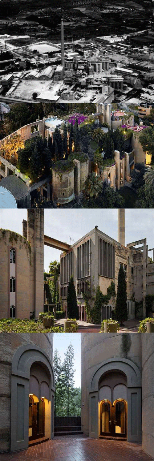 西班牙著名建筑師里卡多•波菲爾(Ricardo Bofill)將一家廢棄的水泥廠改造成了世界上最壯觀的住宅之一。1973年,波菲爾發(fā)現(xiàn)了這家位于巴塞羅那附近的廢棄水泥廠。很多人都沒(méi)有看到這簇建筑群的潛力,其中有些是1920年建造的。
