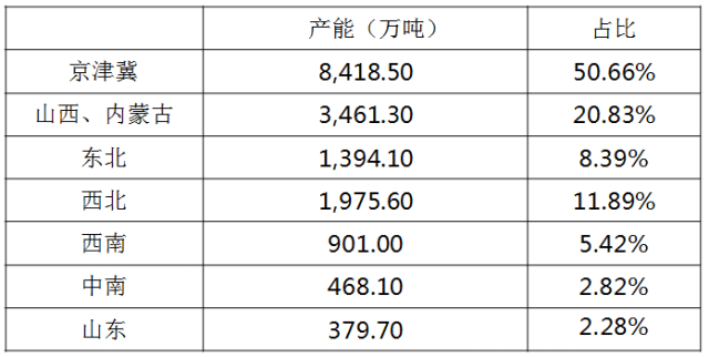 重組后產(chǎn)能合計(jì)1.67億噸,其中京津冀區(qū)域占比51%