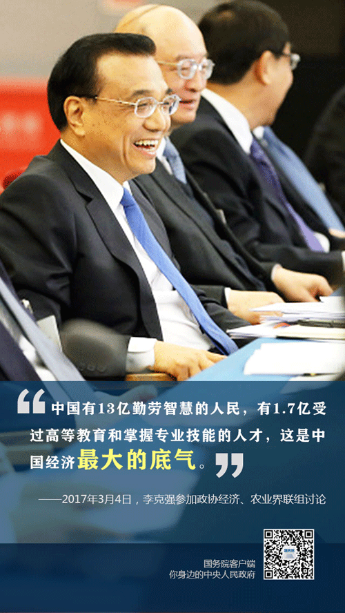 1 “中國有13億勤勞智慧的人民,有1.7億受過高等教育和掌握專業(yè)技的人才,這是中國經(jīng)濟最大的底氣。”