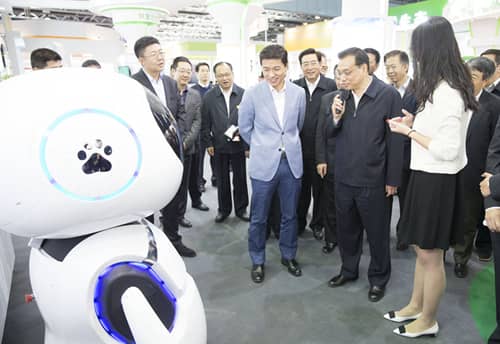 其后的2015年全國雙創(chuàng)周上,李克強與百度公司自主研發(fā)的機器人“小度”來了場“親密接觸”。“你為什么叫小度?”“百度造的呀!”“你儲存了多少數(shù)據(jù)?”“太多了!”“今天PM2.5值是?”機器人正在“思考”,總理接著問道“你知道雙創(chuàng)也利于改善環(huán)境嗎?”“當(dāng)然啦!”