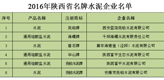 近日,陜西省人民政府辦公廳下發(fā)《關(guān)于公布2016年省名牌產(chǎn)品的通知》,6家水泥企業(yè)榜上有名。