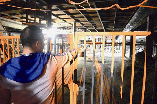 隨后,記者來(lái)到事發(fā)的簡(jiǎn)易工棚,工棚已被鎖起來(lái),但仍隱約可見(jiàn)里面的沙土、水泥堆成小山。
