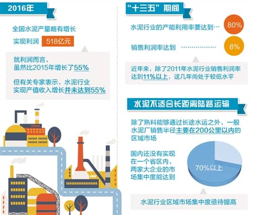 2016年,全國(guó)水泥產(chǎn)量略有增長(zhǎng),實(shí)現(xiàn)利潤(rùn)518億元。利潤(rùn)增長(zhǎng)主要得益于北方大部分水泥企業(yè)虧損狀態(tài)適當(dāng)減輕,部分企業(yè)扭虧為盈,整個(gè)行業(yè)利潤(rùn)才得以明顯提升;同時(shí),南方地區(qū)增長(zhǎng)有限。因而,今年水泥行業(yè)利潤(rùn)增長(zhǎng)仍將主要取決于北方地區(qū)能否全面扭虧為盈。