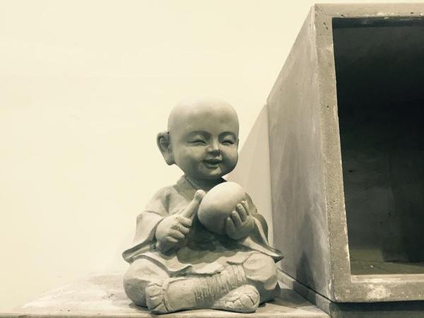 敲木魚的小僧童,造型是不是別有一番滋味。工作人員介紹,因水泥的可塑性,它可以任意制作出各色形狀。但根本上還是源于設(shè)計(jì)師的創(chuàng)作理念,這種僧侶類水泥工藝品目前在國(guó)內(nèi)還是少有。