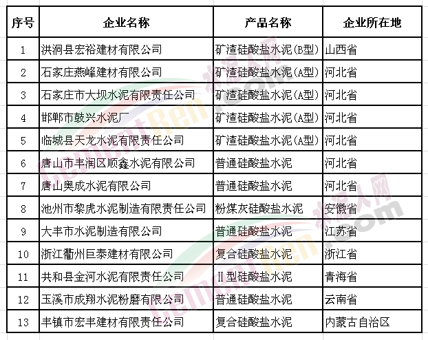 今日(20170328),質(zhì)檢總局網(wǎng)站對外公布水泥抽檢結果,本次抽檢計劃對水泥產(chǎn)品的798家企業(yè)開展監(jiān)督檢驗,其中有89家企業(yè)因停產(chǎn)、拆除、被查封等原因未接受監(jiān)督檢驗。在接受監(jiān)督檢驗的709家企業(yè)的709批次樣品中,有13家企業(yè)的13批次產(chǎn)品檢驗不合格,不合格項主要為氯離子含量、氧化鎂含量不合格。