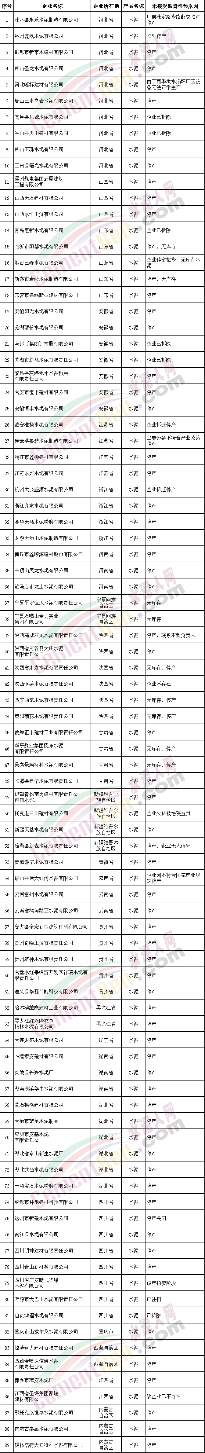 圖2 未接受監(jiān)督檢驗水泥企業(yè)名單
