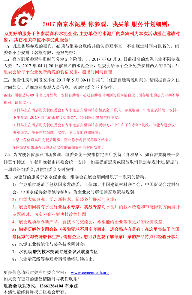 附:2017南京水泥展 你參觀,我買單 服務(wù)計劃細(xì)則: