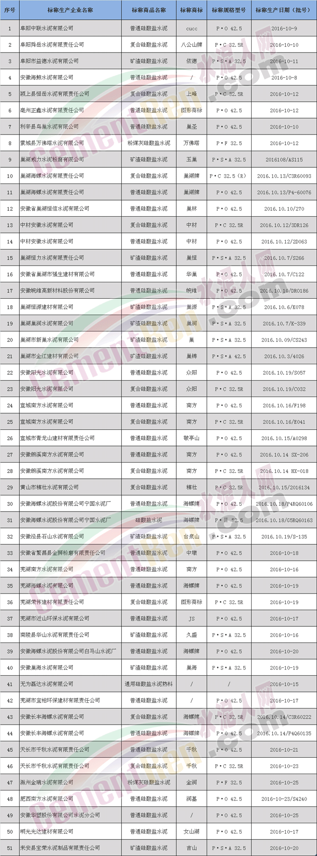 安徽省質(zhì)監(jiān)局官網(wǎng)近日公布了2016年水泥產(chǎn)品省級(jí) 監(jiān)督抽查結(jié)果,在全省7個(gè)地市(合肥、蕪湖、宣城、滁州、阜陽(yáng)、黃山、亳州)的水泥產(chǎn)品生產(chǎn)領(lǐng)域內(nèi)共抽取51組水泥樣品,51組水泥產(chǎn)品綜合判定結(jié)論均為合格,抽檢合格率為100%。