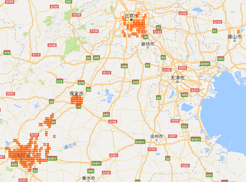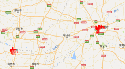 為加強(qiáng)對(duì)重點(diǎn)地區(qū)大氣污染監(jiān)控,推進(jìn)精細(xì)化管理,環(huán)境保護(hù)部組織有關(guān)技術(shù)單位利用衛(wèi)星反演等技術(shù),將京津冀及周邊地區(qū)劃分為若干個(gè)面積為3Km×3Km的網(wǎng)格,并定期對(duì)網(wǎng)格范圍內(nèi)大氣污染程度進(jìn)行監(jiān)控分析。根據(jù)3月16日至4月1日京津冀及周邊地區(qū)重點(diǎn)網(wǎng)格大氣污染累積濃度分析,污染程度最高的300個(gè)熱點(diǎn)網(wǎng)格主要集中在河北省石家莊、保定、唐山,山東省濟(jì)南,河南省安陽,北京市大興、通州等地市(區(qū))。