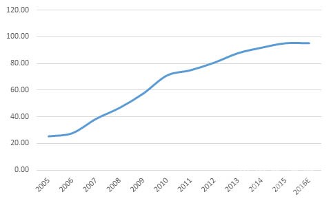 根據(jù)國家統(tǒng)計局?jǐn)?shù)據(jù),2015年窯外分解窯熟料產(chǎn)量達(dá)12.7億噸,占熟料總產(chǎn)量的95.18%,預(yù)計2016年這一比重在95.2%左右,基本與2015年相當(dāng)。雖然窯外分解窯工藝的熟料產(chǎn)量比重逐年提高,但是截止2016年仍有4.8%的熟料由非窯外分解窯生產(chǎn)。