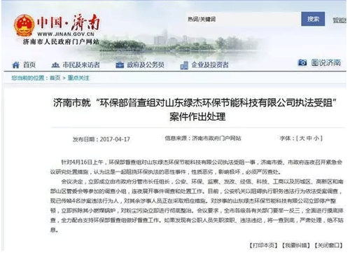 針對4月16日上午,環(huán)保部督查組對山東綠杰環(huán)保節(jié)能科技有限公司執(zhí)法受阻一事,濟南市委、市政府連夜召開緊急會議研究處置措施,認為這是一起阻撓環(huán)保執(zhí)法的惡性事件,性質惡劣,影響極壞,必須嚴厲查處。