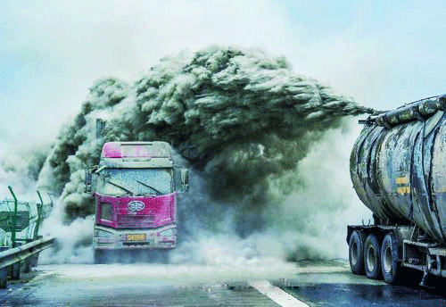 雖然已經(jīng)過去很久,但是說起拍照當天的情景,姜豪仍然記憶猶新。那天他和同事接到高速路段上發(fā)生緊急事故的報警后,迅速趕到事故現(xiàn)場?,F(xiàn)場起火的貨車停靠在硬路肩上,車廂里不斷有黃色濃霧冒出,還夾雜著黑煙和火苗。
