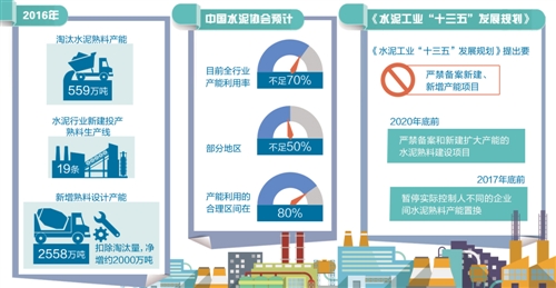 《規(guī)劃》提出,隨著我國(guó)水泥新的增量需求放緩,加上新增產(chǎn)能仍不斷增加,產(chǎn)能過(guò)剩的矛盾日益突出,全行業(yè)產(chǎn)能利用率不足70%,部分地區(qū)不足50%。全行業(yè)生產(chǎn)、銷(xiāo)售、價(jià)格和效益起伏不定,多數(shù)中小企業(yè)經(jīng)營(yíng)困難。去產(chǎn)能、調(diào)結(jié)構(gòu)、穩(wěn)增長(zhǎng)、增效益將成為“十三五”時(shí)期水泥行業(yè)供給側(cè)結(jié)構(gòu)性改革的主要任務(wù)。