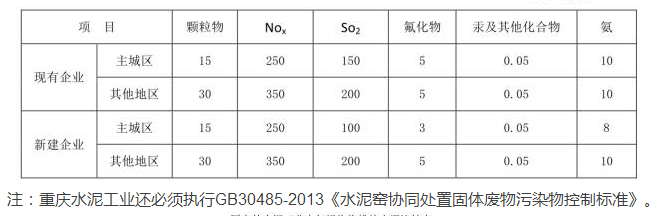 重慶DB50/418-2016《水泥工業(yè)大氣污染物排放標(biāo)準(zhǔn)》