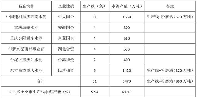 2)6大名企水泥集團(tuán)生產(chǎn)線、水泥產(chǎn)能占全市比重情況