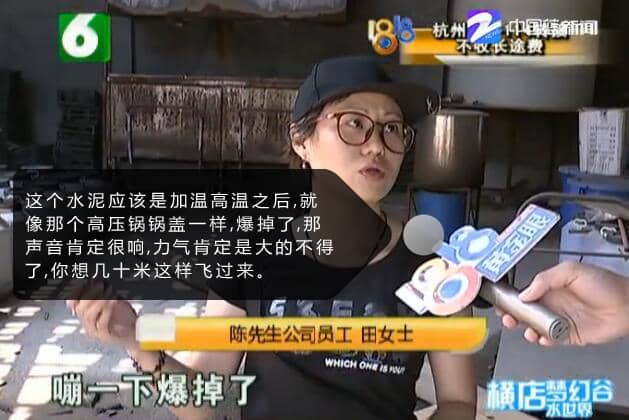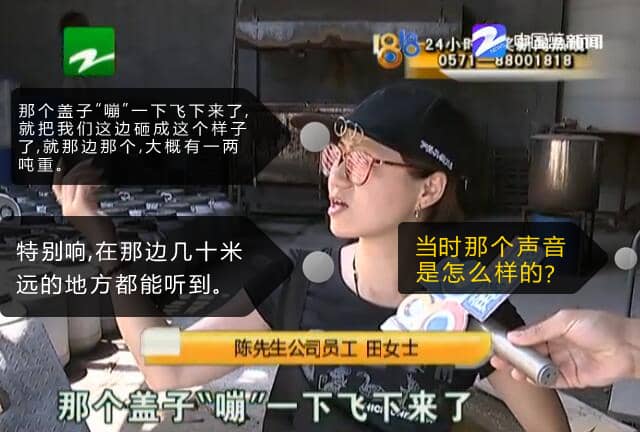 田女士后來(lái)得知,蓋子是從隔壁一家工廠的水泥攪拌罐上飛來(lái)的。