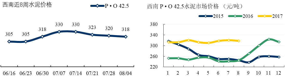 西南: 四川受環(huán)保檢查影響,成都及周邊部分房地產(chǎn)工地及攪拌站停產(chǎn)。但各企業(yè)并未強(qiáng)制停產(chǎn),目前水泥供應(yīng)尚較充裕。重慶雖然高溫天氣持續(xù),但主導(dǎo)企業(yè)出貨仍在正常水平 7-8 成,近期企業(yè)穩(wěn)價意圖十分明顯。本周雨水天氣開始減少,昆明及周邊廠家水泥出貨小幅回升。