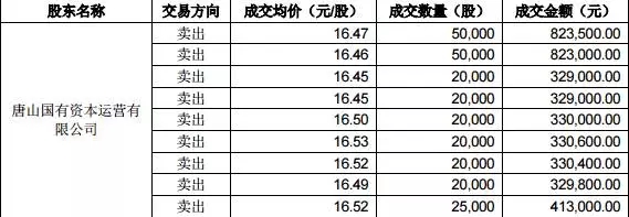 2017年7月7日,唐山國(guó)資公司通過(guò)深圳證券交易所證券交易系統(tǒng)減持公司股份319.51萬(wàn)股,占公司總股本的 0.237%;由于工作人員誤操作,同日買入冀東水泥股份10萬(wàn)股,占公司總股本的 0.007%。