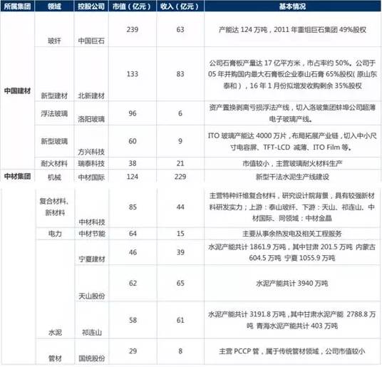 中國建材和中材集團在水泥、玻璃纖維等多個業(yè)務(wù)板塊具有重合之處,中國建材擅長水泥、玻璃、輕質(zhì)建材、玻璃纖維等建筑材料,而中國中材擅長非金屬材料制造業(yè)、非金屬材料技術(shù)裝備與工程業(yè)、非金屬礦業(yè)三大產(chǎn)業(yè),通過業(yè)務(wù)重組,兩大集團通過優(yōu)勢互補可以有效提高綜合競爭實力。