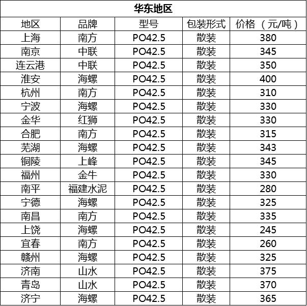 【水泥人網(wǎng)】隨著京津冀及周邊地區(qū)的秋冬季錯(cuò)峰生產(chǎn)以及采暖整體停窯的影響,再加上水泥龍頭中國建材之前的規(guī)劃,未來三個(gè)月將實(shí)現(xiàn)每月一漲的節(jié)奏。龍頭企業(yè)的帶動(dòng)以及停窯的影響,各地水泥價(jià)格勢(shì)必會(huì)出現(xiàn)一定程度的上漲,我們將全國各重點(diǎn)區(qū)域水泥價(jià)格整理如下: