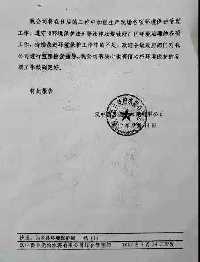 漢中西鄉(xiāng)堯柏水泥有限公司已經(jīng)向環(huán)保部門(mén)出具了整改報(bào)告,據(jù)了解,對(duì)于該公司的此次整改是否達(dá)標(biāo),西鄉(xiāng)縣環(huán)保局尚未對(duì)其進(jìn)行驗(yàn)收。