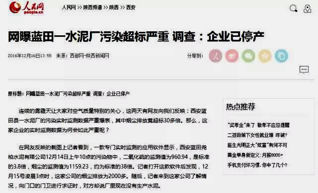 而同屬于堯柏水泥集團(tuán)另一子公司西安藍(lán)田堯柏水泥有限公司也曾被爆出環(huán)保污染問(wèn)題: