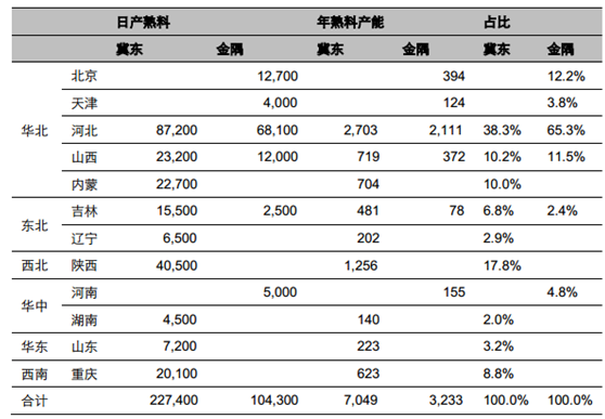 冀東水泥和金隅股份的熟料產(chǎn)線分布情況