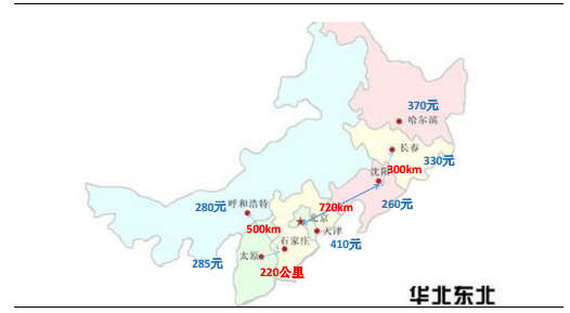 華北和東北地區(qū)水泥價(jià)格及運(yùn)輸距離