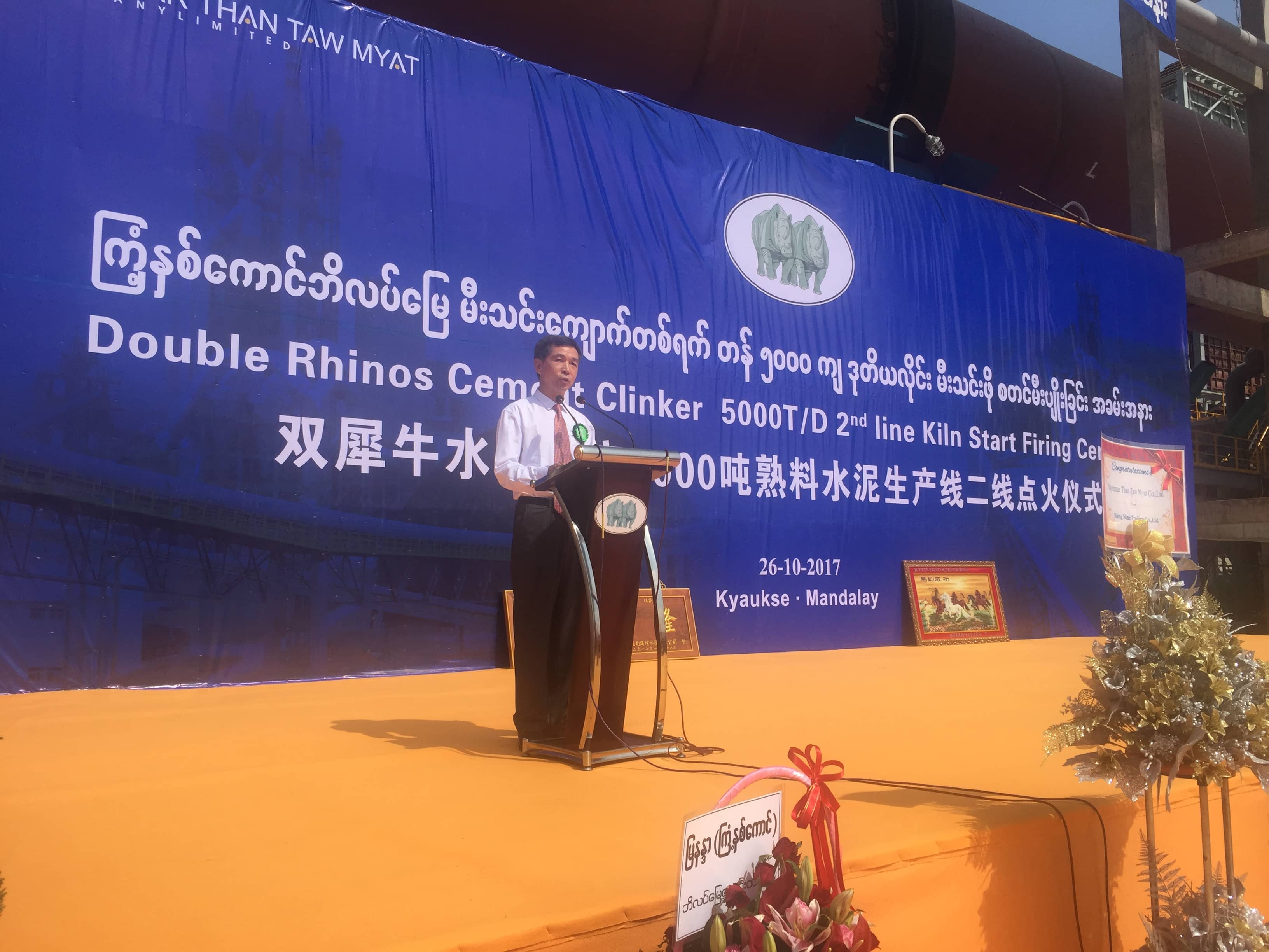 王宗穎總領(lǐng)事首先代表總領(lǐng)館對(duì)二期正式點(diǎn)火表示祝賀。他表示,旦多淼水泥一期項(xiàng)目自啟動(dòng)以來,遵守緬甸法律法規(guī),尊重當(dāng)?shù)氐娘L(fēng)俗習(xí)慣,注重環(huán)境保護(hù)和社會(huì)公益,在促進(jìn)當(dāng)?shù)鼐蜆I(yè),推動(dòng)村鎮(zhèn)建設(shè)和提升人民生活水平方面做出了積極貢獻(xiàn),樹立了中國(guó)企業(yè)的良好形象,是中緬友好合作、互惠共贏的一個(gè)典范。他鼓勵(lì)二期項(xiàng)目相關(guān)方繼續(xù)精誠(chéng)團(tuán)結(jié),互學(xué)互助,進(jìn)一步促進(jìn)項(xiàng)目的經(jīng)濟(jì)效益和社會(huì)效益“雙豐收”,為緬甸經(jīng)濟(jì)社會(huì)發(fā)展、為增進(jìn)中緬兩國(guó)傳統(tǒng)友誼譜寫新篇章。