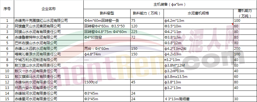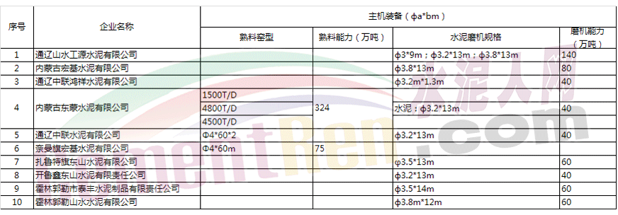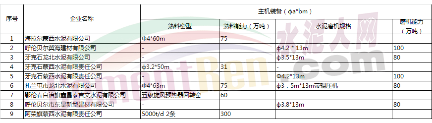 據(jù)了解蒙東四盟特指通遼市以北地區(qū),包括通遼、赤峰、興安盟、呼倫貝爾、錫林郭勒等地區(qū)。據(jù)了解蒙東地區(qū)靠近東北區(qū)域,有四十余家水泥企業(yè),具體名單如下: