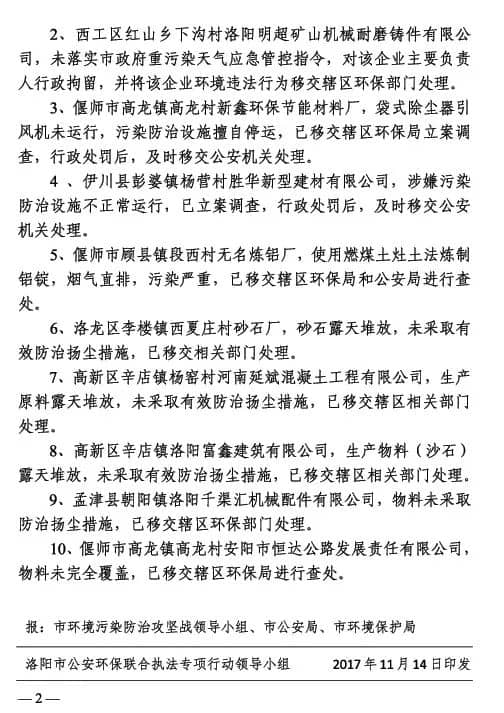 此次共出動(dòng)現(xiàn)場(chǎng)執(zhí)法人員60人,執(zhí)法車輛12臺(tái),檢查企業(yè)32家。其中發(fā)現(xiàn)問(wèn)題企業(yè)10家,占檢查企業(yè)數(shù)31.2%;未落實(shí)管控措施的企業(yè)2家,占檢查企業(yè)數(shù)的6.2%;防污設(shè)施不正常運(yùn)行的企業(yè)2家,占檢查企業(yè)數(shù)的6.2%;其他違法行為的企業(yè)6家,占檢查企業(yè)數(shù)的18.8%;其他違法行為的企業(yè)6家,占檢查企業(yè)數(shù)的18.8%,現(xiàn)已行政拘留2人。詳情如下: