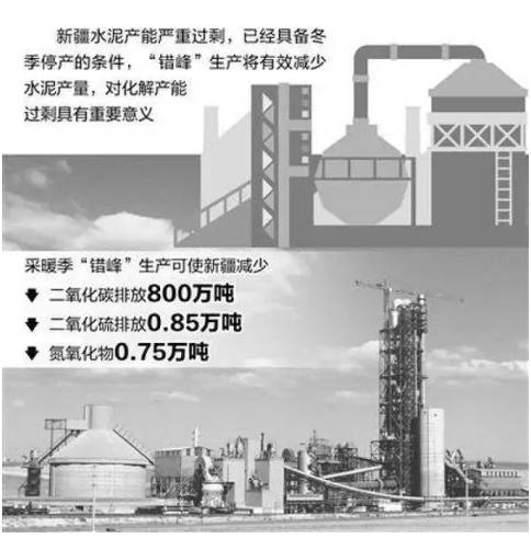 水泥企業(yè)在新疆冬季開展生產,比平時高出10%能耗,錯峰生產可規(guī)避高耗能生產期,使水泥企業(yè)全年節(jié)煤10萬噸到15萬噸。停窯期間,可停止用煤100萬噸,減排二氧化碳800萬噸、二氧化硫0.85萬噸,為節(jié)能減排作出貢獻。