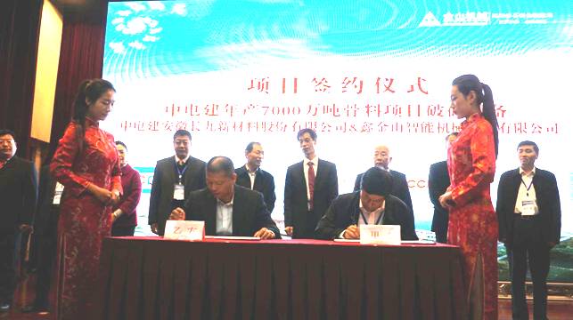10月底,在臺兒莊古城隆重召開的“高效節(jié)能綠色環(huán)保砂石骨料高峰論壇暨院士工作站啟動典禮及項目簽約儀式”上,中電建安徽長九新材料股份總經(jīng)理肖光彩與鑫金山機械董事長孫中巖舉行了簽約儀式。筆者注意到,接過對方簽約函的那一瞬間,孫中巖的眼神充滿欣喜,表情自信而堅定。