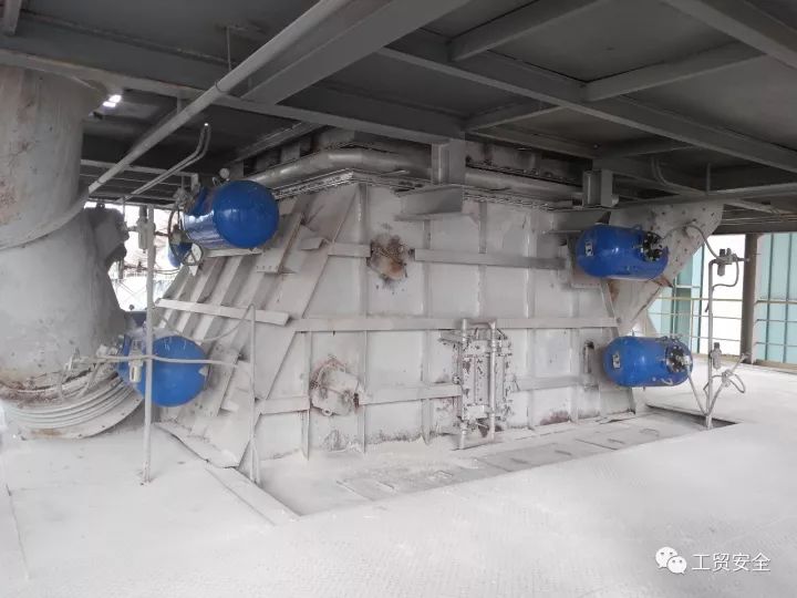 2)檢查和清理結(jié)皮前,要提前與中控做好聯(lián)系,系統(tǒng)要保持足夠的負(fù)壓,關(guān)閉空氣炮的進(jìn)口氣源,將氣罐內(nèi)氣體釋放,斷電并掛上“禁止合閘”牌。