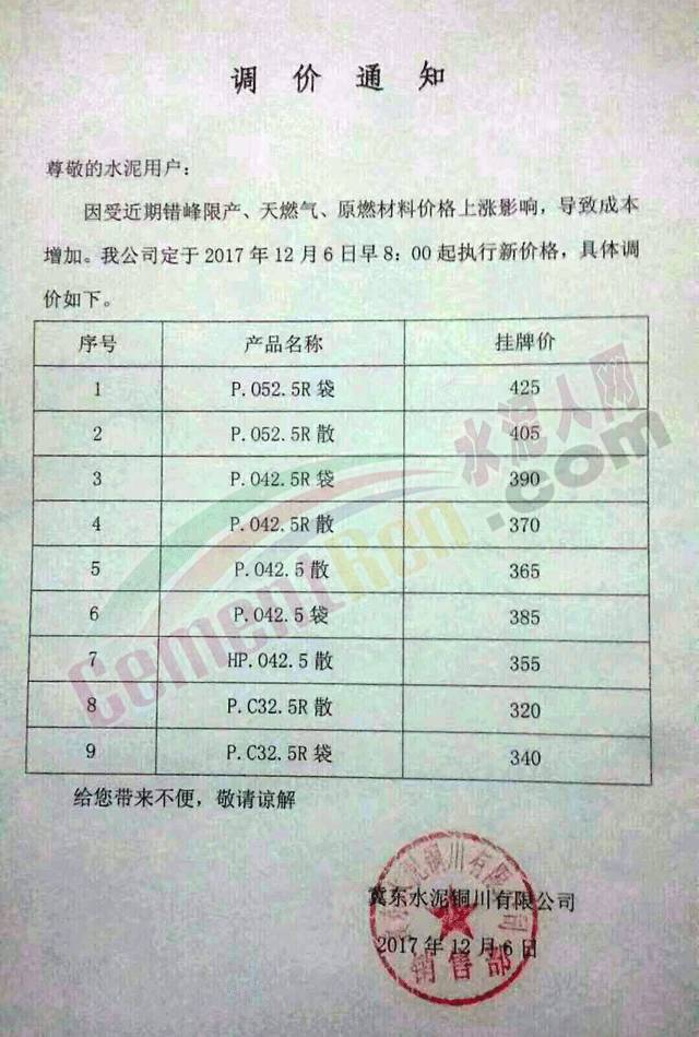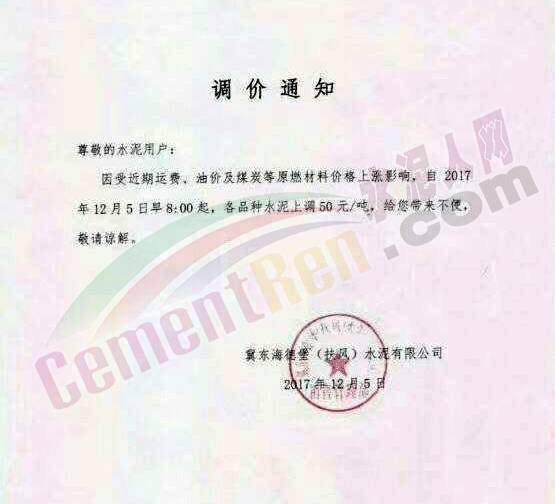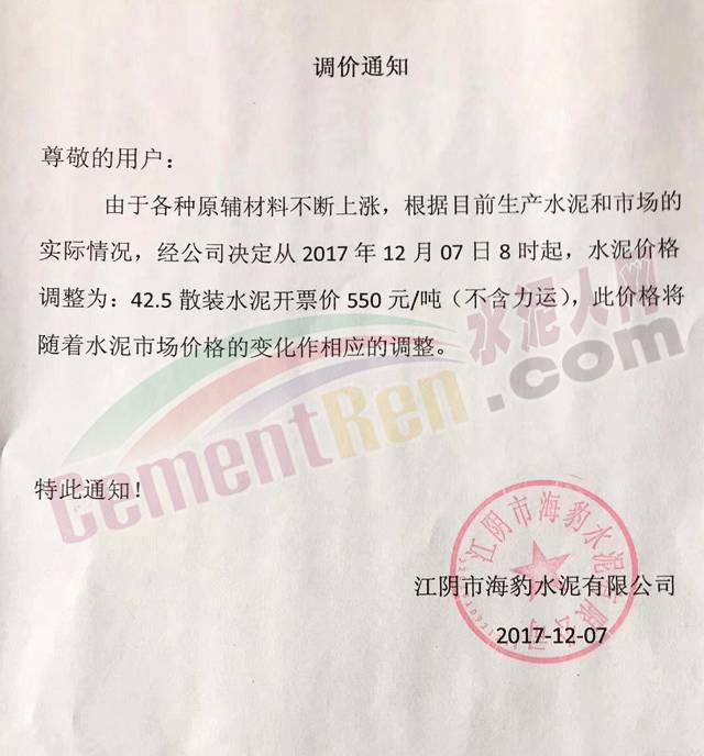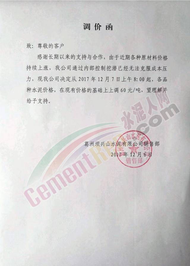 【水泥人網(wǎng)】近期多家企業(yè)發(fā)布提價通知,今日也不例外,云南、陜西、山西、江蘇、湖北等多區(qū)域企業(yè)發(fā)布提價通知,通知函如下: