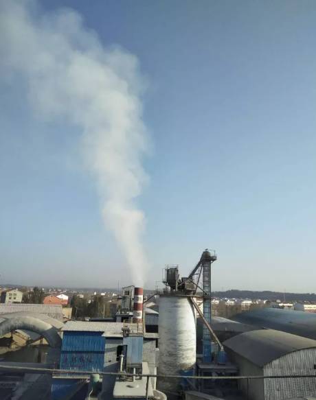 進廠時礦渣微粉含水量大(約10%左右),需通過輸送帶送至烘烤設(shè)備進行烘烤,達(dá)到將含水量降至1%以下才符合生產(chǎn)要求。該生產(chǎn)過程中所產(chǎn)生的氣體均需通過布袋除塵過濾后才向外界排放,成分主要是水。由于冬季氣溫低,熱的水蒸氣遇冷凝結(jié)形成水霧。夏季溫度高則無此現(xiàn)象。居民朋友們不必?fù)?dān)心。