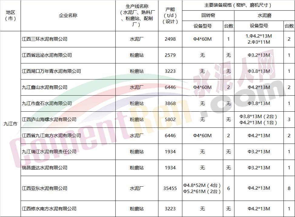 江西省水泥企業(yè)名單