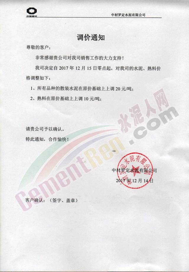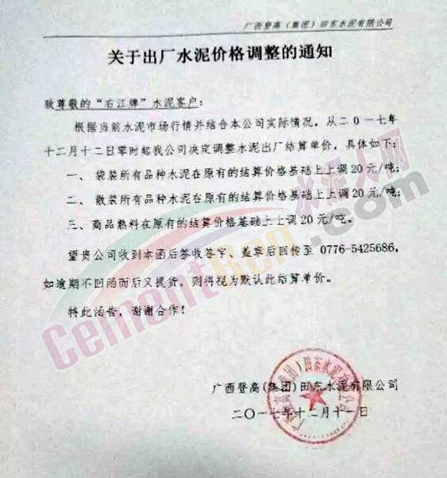 近一周,多區(qū)域企業(yè)再一次上調(diào)水泥價(jià)格,葛洲壩興山水泥有限公司日前發(fā)布調(diào)價(jià)函,對(duì)巴東片區(qū)自12月14日中午12點(diǎn)起,各品種水泥在原價(jià)格基礎(chǔ)上上調(diào)60元/噸。