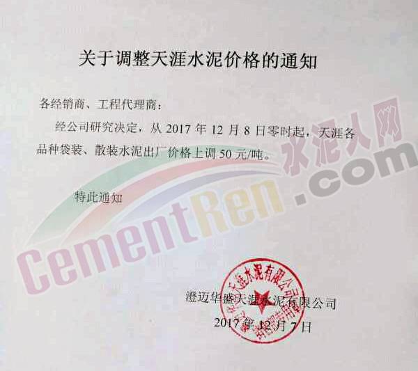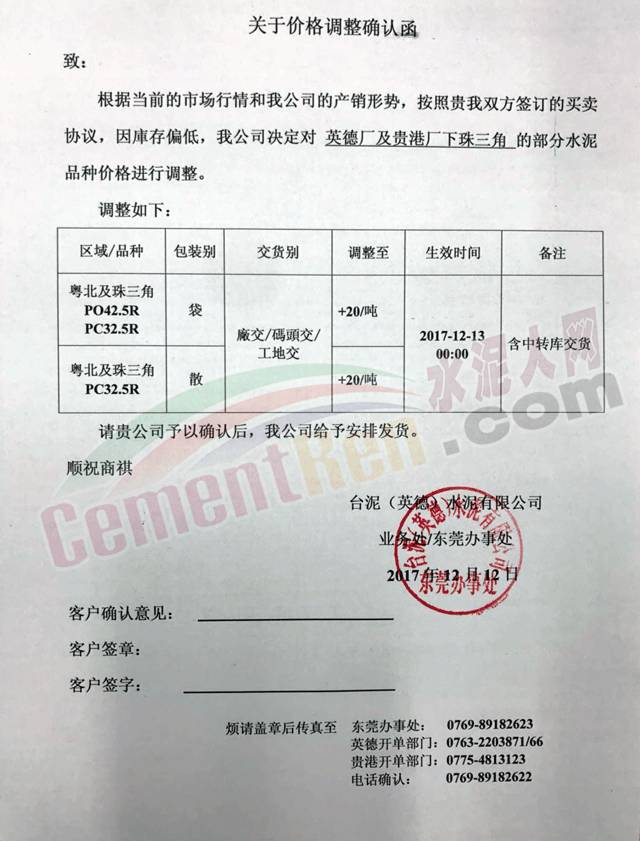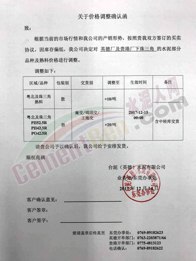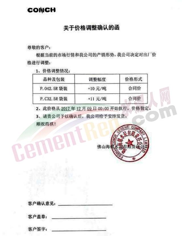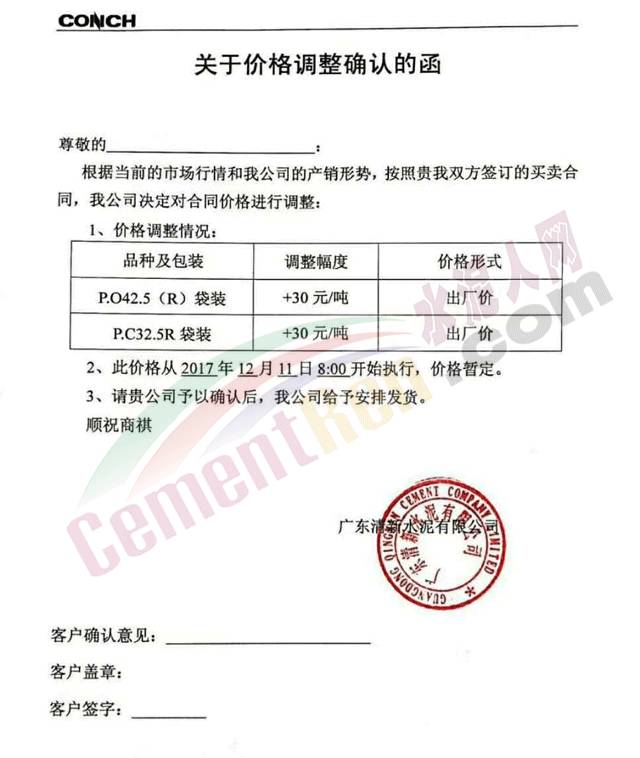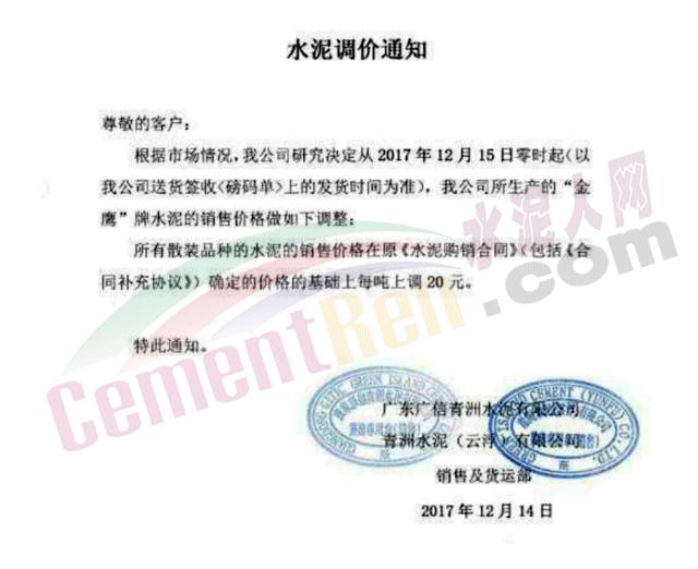 廣東地區(qū)12月9日佛山海螺PO包裝上調(diào)10元噸,PC包裝上調(diào)11元噸,12月11日清新海螺、廣英PO包裝、PC散包裝上調(diào)30元噸,12月12日江門海螺PO/PC包裝上調(diào)20元噸,12月13日英德海螺、臺(tái)泥、華潤(rùn)、中材PO包裝、PC散包裝上調(diào)20元噸。