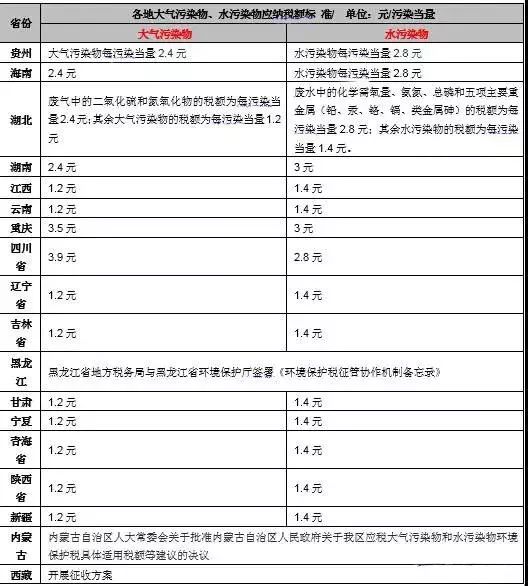 【各地環(huán)保稅稅額標(biāo)準(zhǔn)】請參照計算