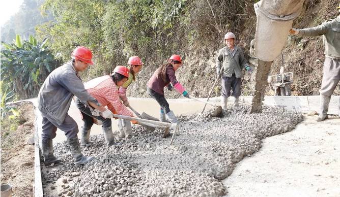 雖是寒冬,修路的工地卻是熱火朝天,老百姓對(duì)修路非常熱情,板弄村的村民們?nèi)砍鰟?dòng),主動(dòng)義務(wù)幫忙挖路基和進(jìn)行攤鋪。一邊是修路的熱情,一邊卻是水泥供應(yīng)的困難。